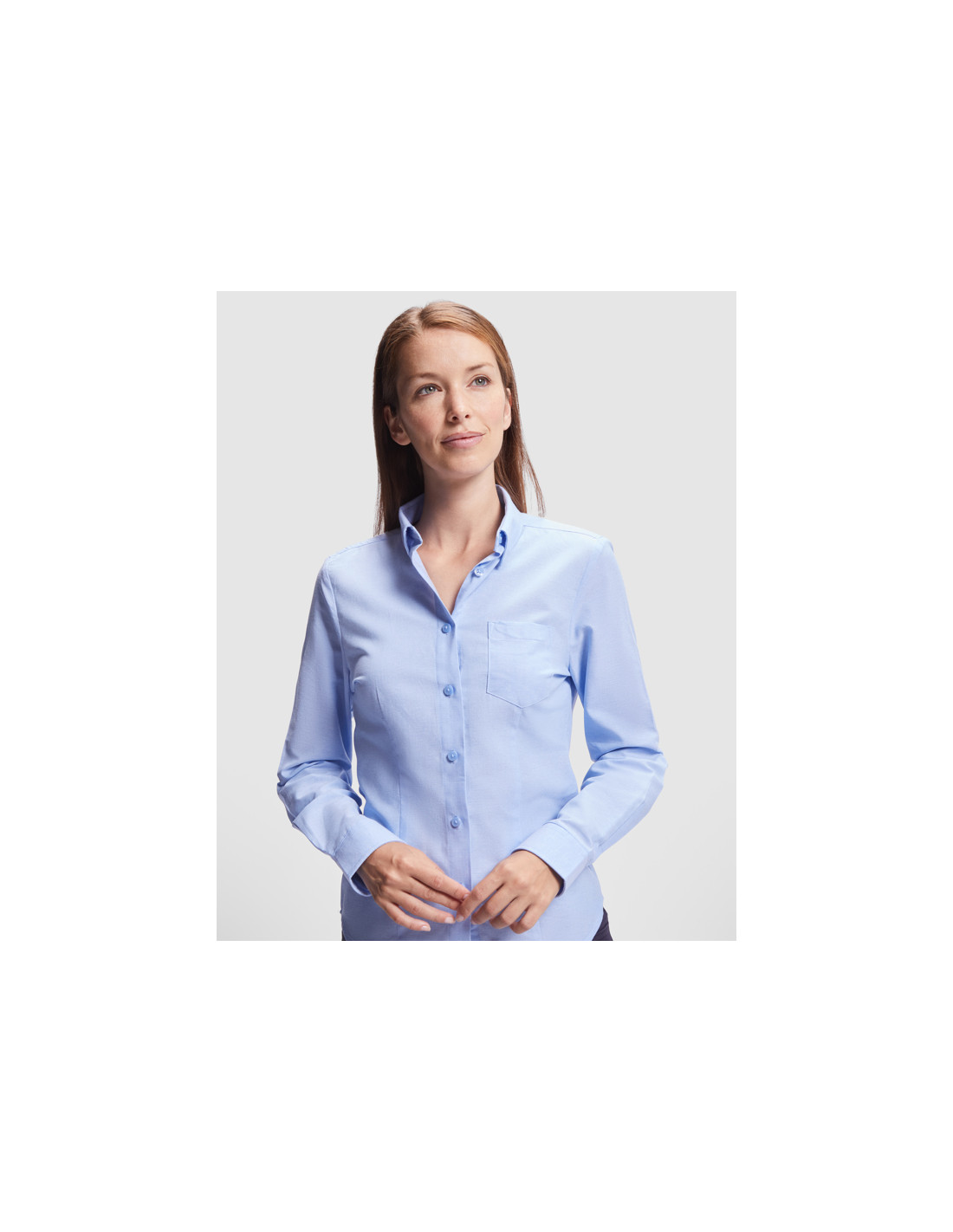 Camisa de manga larga para mujer con corte entallado, bolsillo en el pecho y espalda con canesú. Elegancia y comodidad para un look profesional.