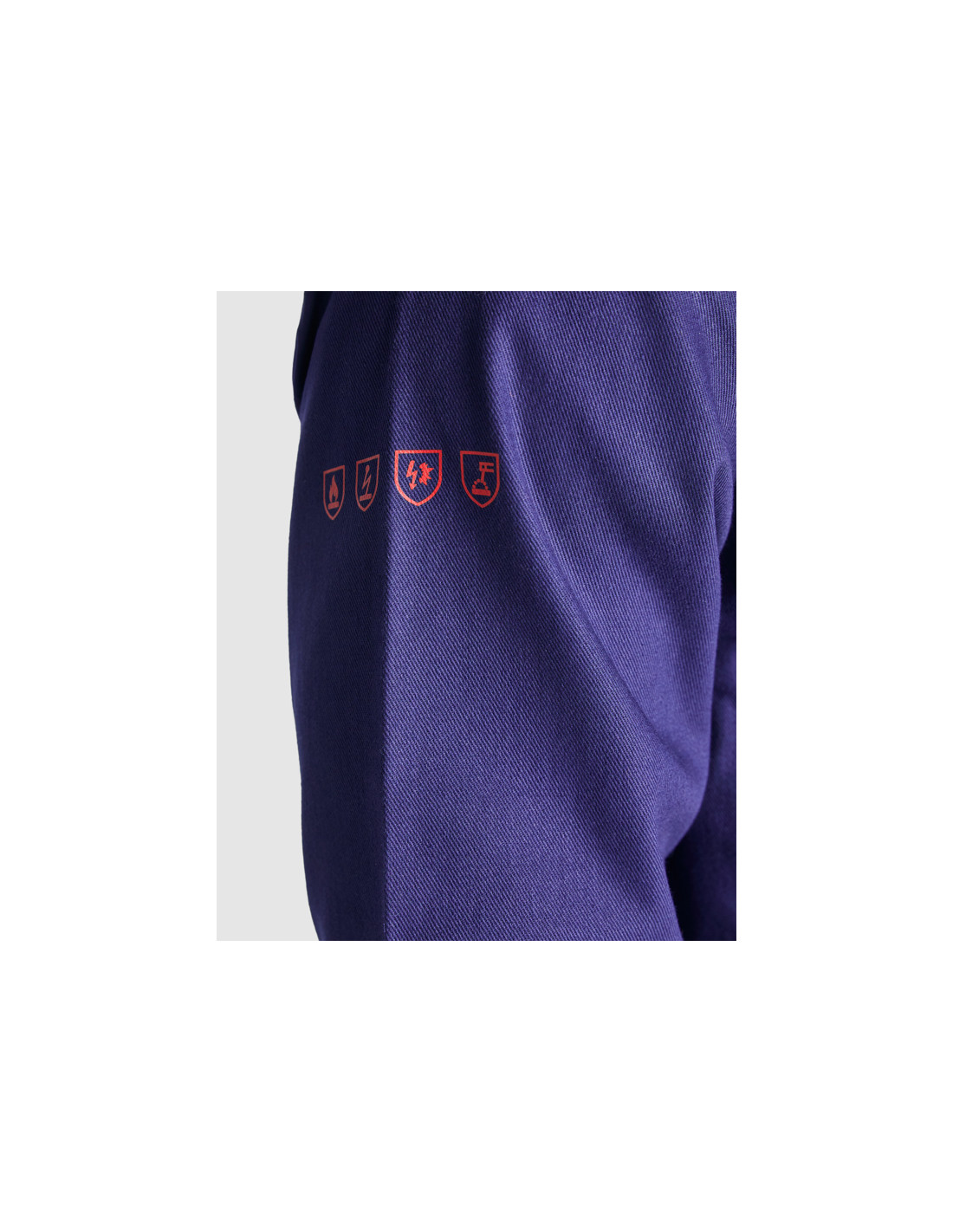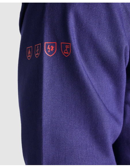 La chaqueta Cruiser está fabricada en tejido ignífugo para ofrecer seguridad y confort en entornos laborales de alto riesgo. Presenta una tapeta central con cremallera y cierre de velcro que refuerza la protección, además de dos bolsillos en el pecho y dos bolsillos laterales con tapeta para guardar herramientas o accesorios de manera segura. Su cinturilla con goma elástica en los laterales y los puños elásticos garantizan un ajuste perfecto durante toda la jornada. Una prenda resistente, práctica y cómoda para profesionales que buscan la máxima protección.