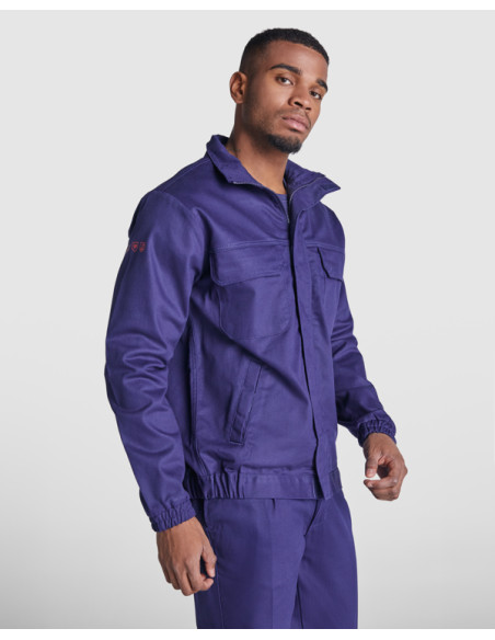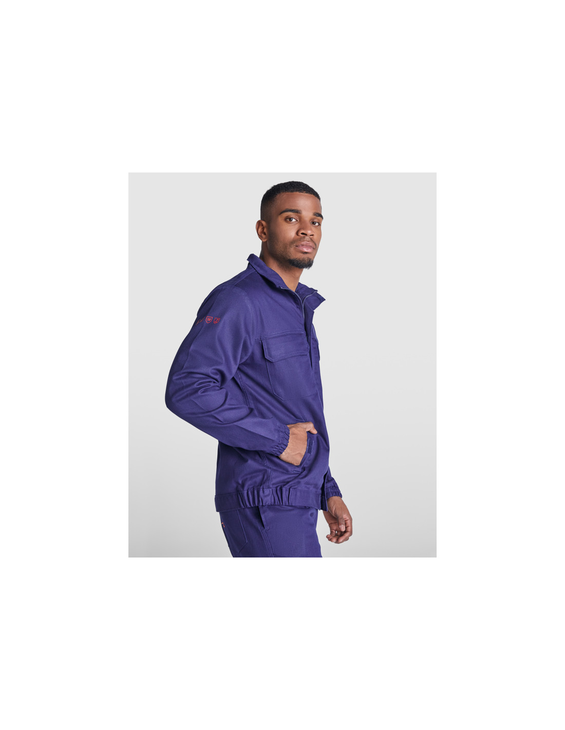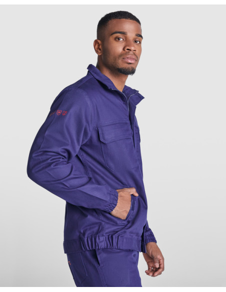 Chaqueta ignífuga con cremallera y velcro, bolsillos funcionales y ajuste cómodo gracias a su cinturilla y puños elásticos.