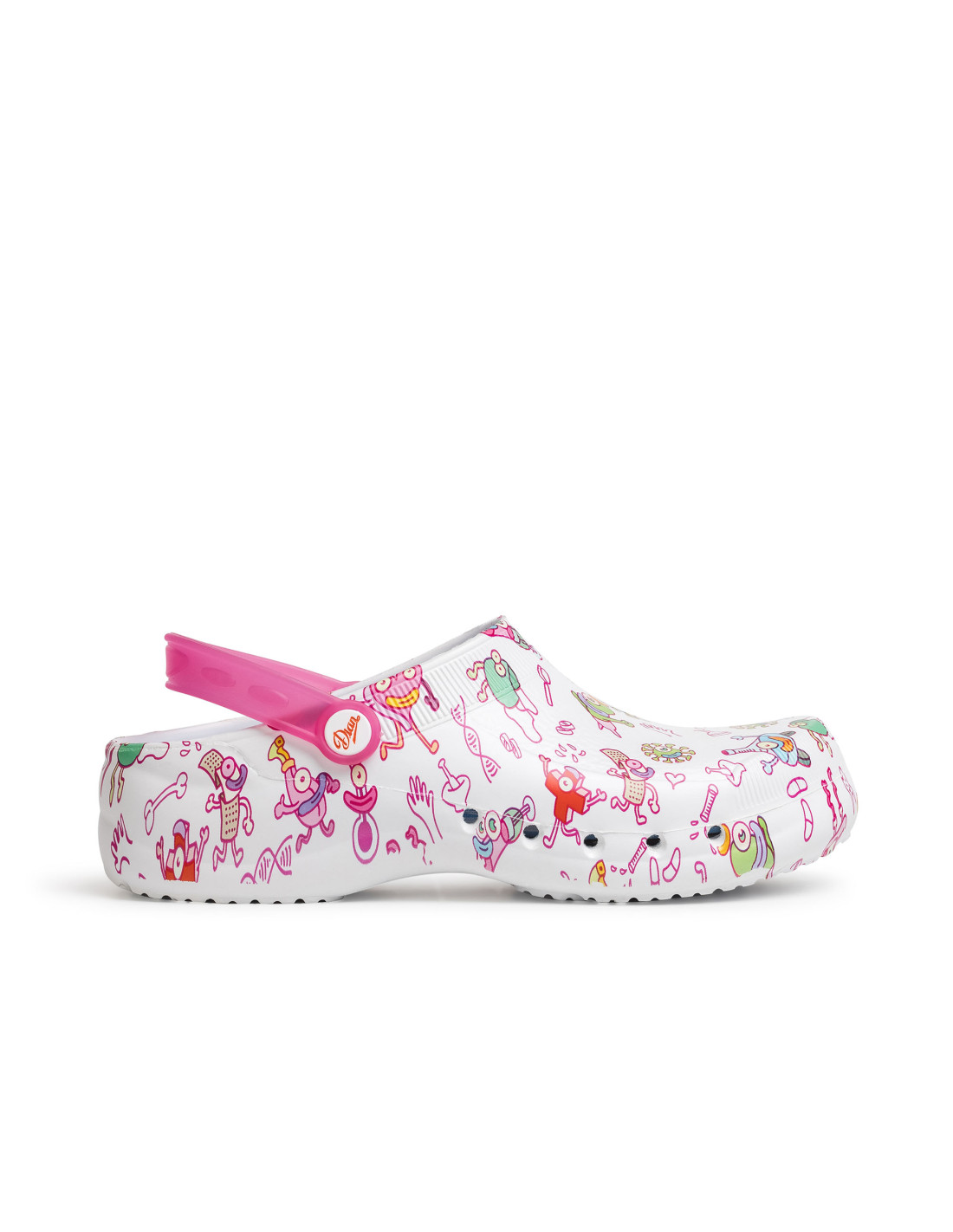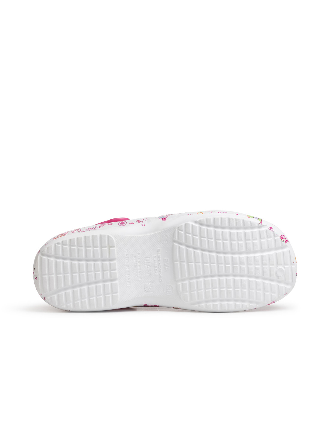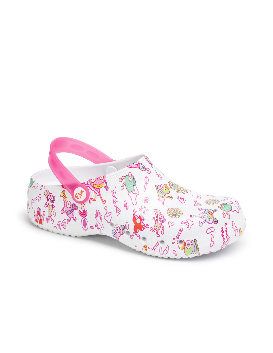 Zueco ultraligero de EVA, antibacteriano, libre de látex, monocasco, anatómico y antideslizante. Apto para lavado en lavadora hasta 40º. Con correa posterior abatible entre el talón y la pala, perforado en los laterales para facilitar la transpiración, la limpieza y evitar la penetración directa dentro del zueco de líquidos o fluidos. Planta con micropuntos de masaje para estimular la circulación sanguínea. Incorpora una plantilla interior de tejido sobre espuma de latex con tratamiento antibacterias. ULTRALIGERO, solo 180 gramos el par.