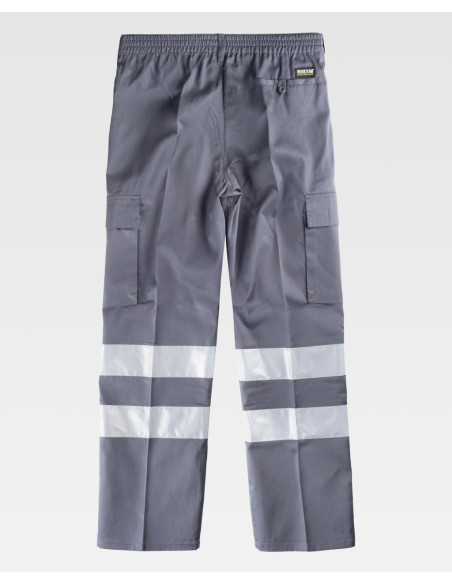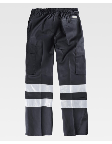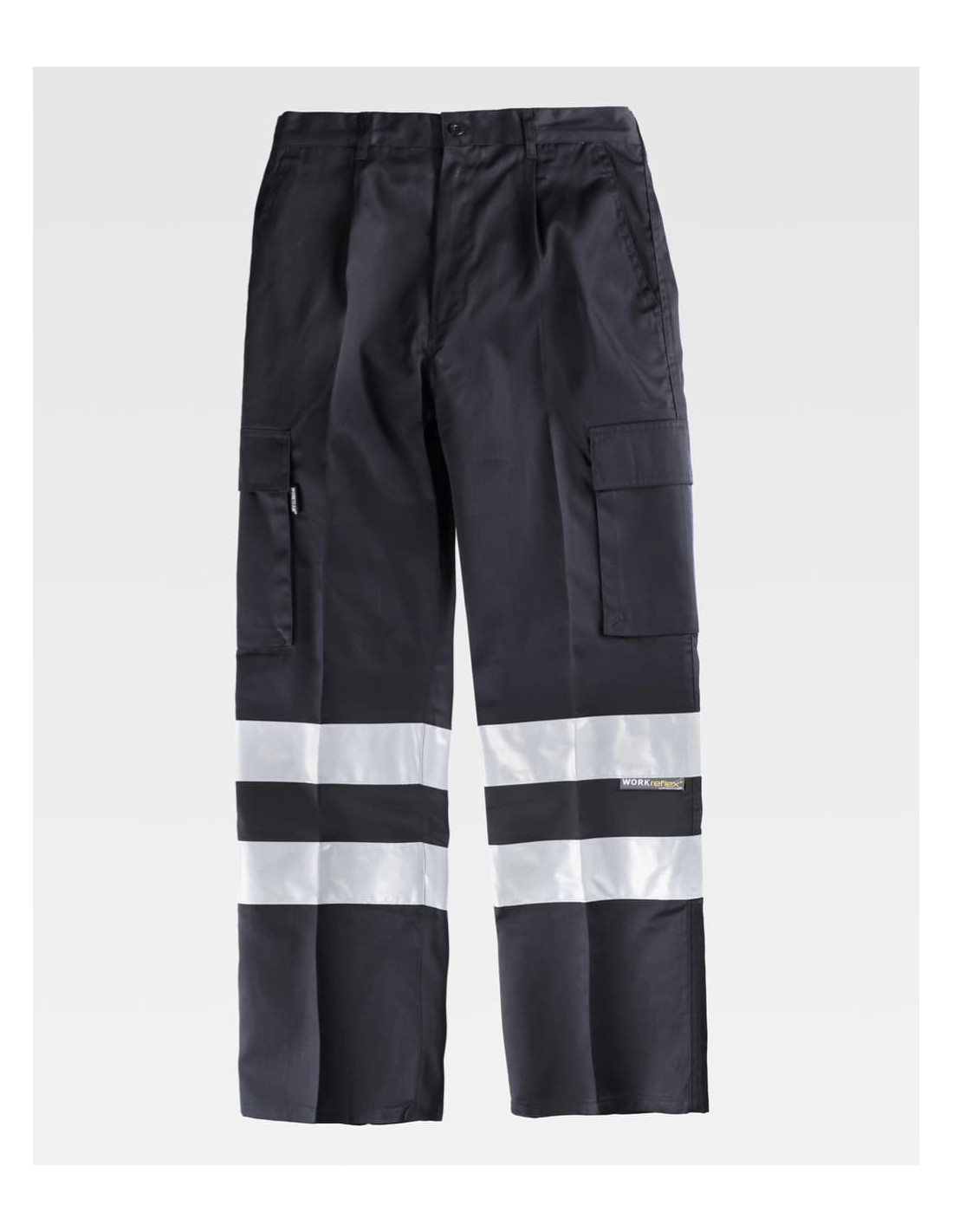 Pantalón recto con cintas reflectantes para mayor visibilidad y seguridad. Cuenta con dos bolsillos de abertura inclinada en los costados, ideales para acceder fácilmente a tus pertenencias. Además, incluye dos bolsillos laterales de carga con cartera de velcro, perfectos para guardar objetos de mayor tamaño. En la parte trasera, dispone de un bolsillo de ojal con cierre de presilla y botón para mayor seguridad. Las dos cintas reflectantes en las perneras aumentan la visibilidad en condiciones de poca luz, haciendo de este pantalón una opción ideal para actividades nocturnas o en entornos de trabajo. El diseño se completa con un elástico en la cintura para un ajuste cómodo, trabillas para el uso de cinturón, y un cierre de botón con bragueta de cremallera para un ajuste seguro y práctico.