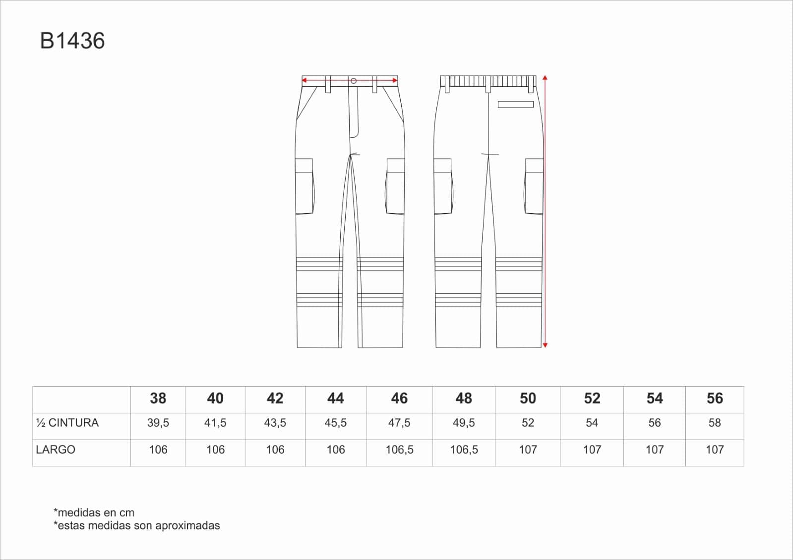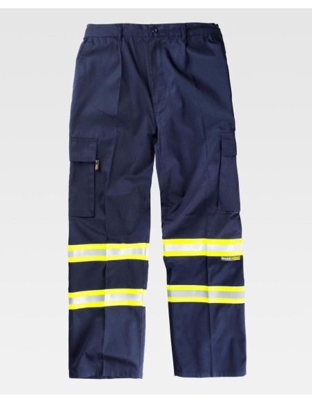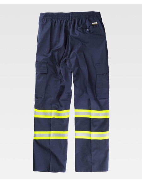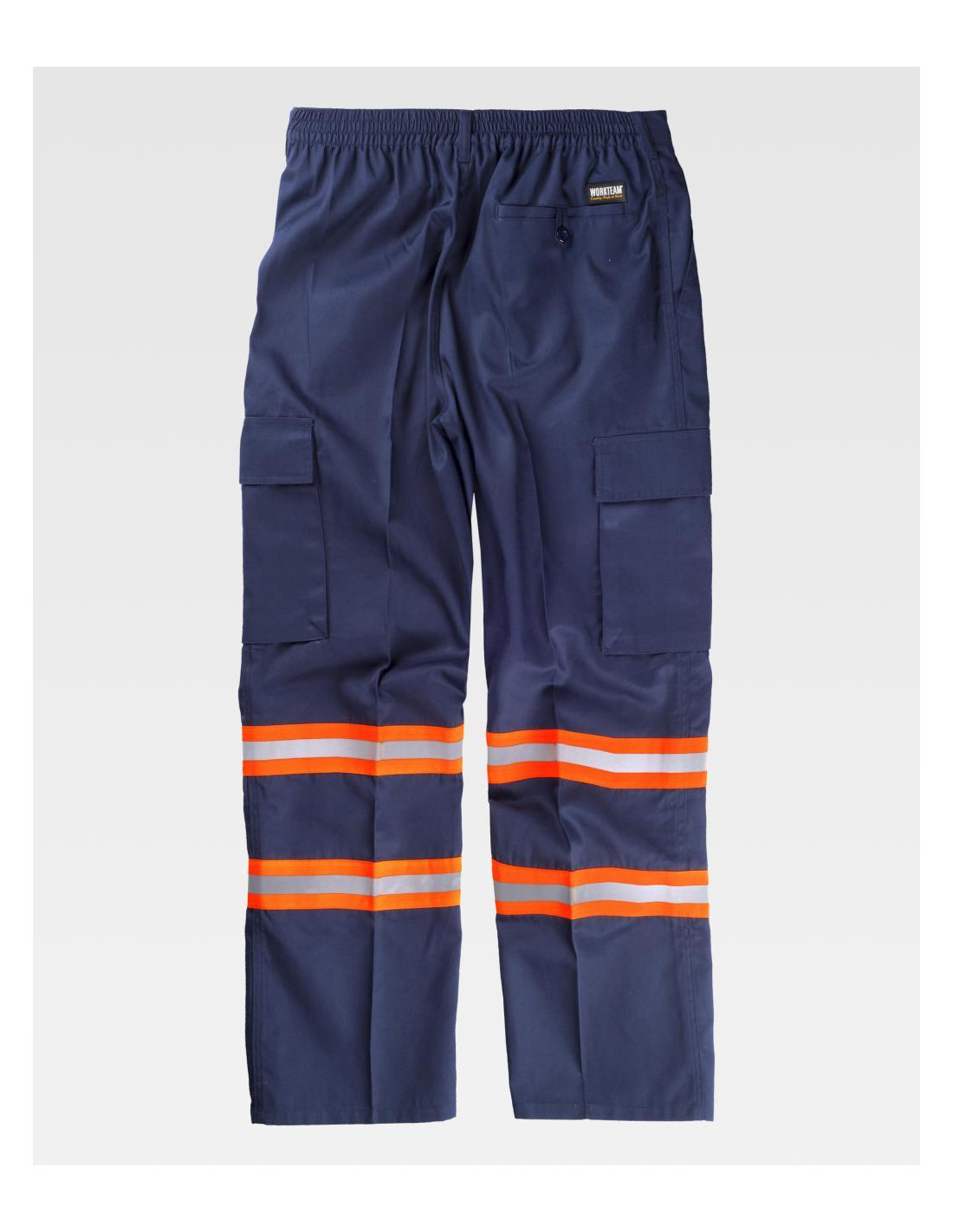 Pantalón recto con cintas reflectante-fluorescentes para mayor visibilidad y seguridad. Equipado con dos bolsillos de abertura inclinada en los costados, dos bolsillos laterales de carga con cartera de velcro, y un bolsillo trasero de ojal con cierre de presilla y botón. Las bandas fluorescentes con cinta reflectante en las perneras aseguran alta visibilidad. Incluye elástico en la cintura, trabillas, y un cierre de botón con bragueta de cremallera para un ajuste cómodo y seguro.