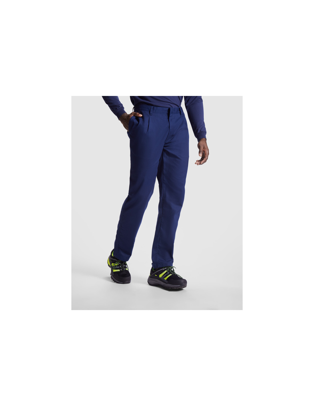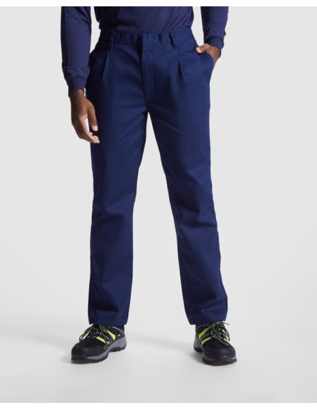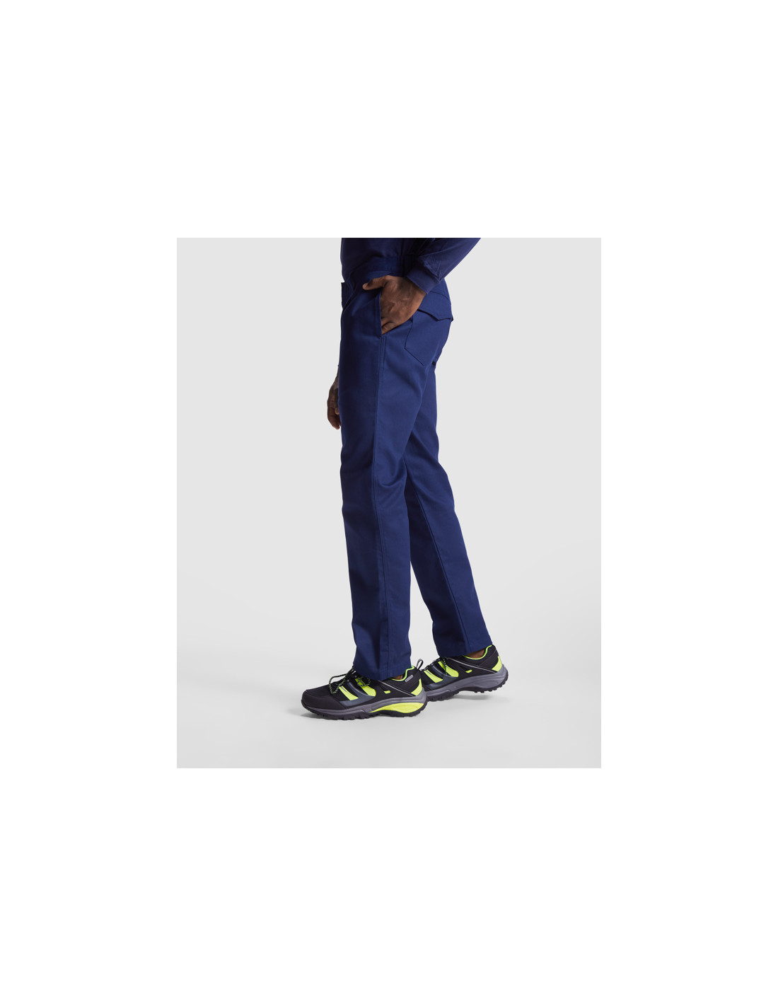 Pantalón largo ignífugo con cintura elástica ajustable, bolsillos funcionales y cierre de velcro para mayor seguridad y confort.