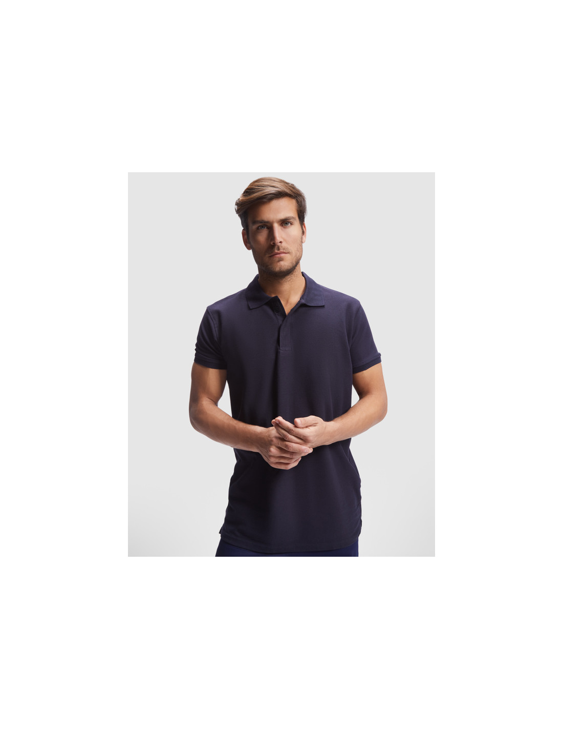 Polo de manga corta con cuello y ribete en canalé, cierre de velcro y aperturas laterales para mayor comodidad y libertad de movimiento.