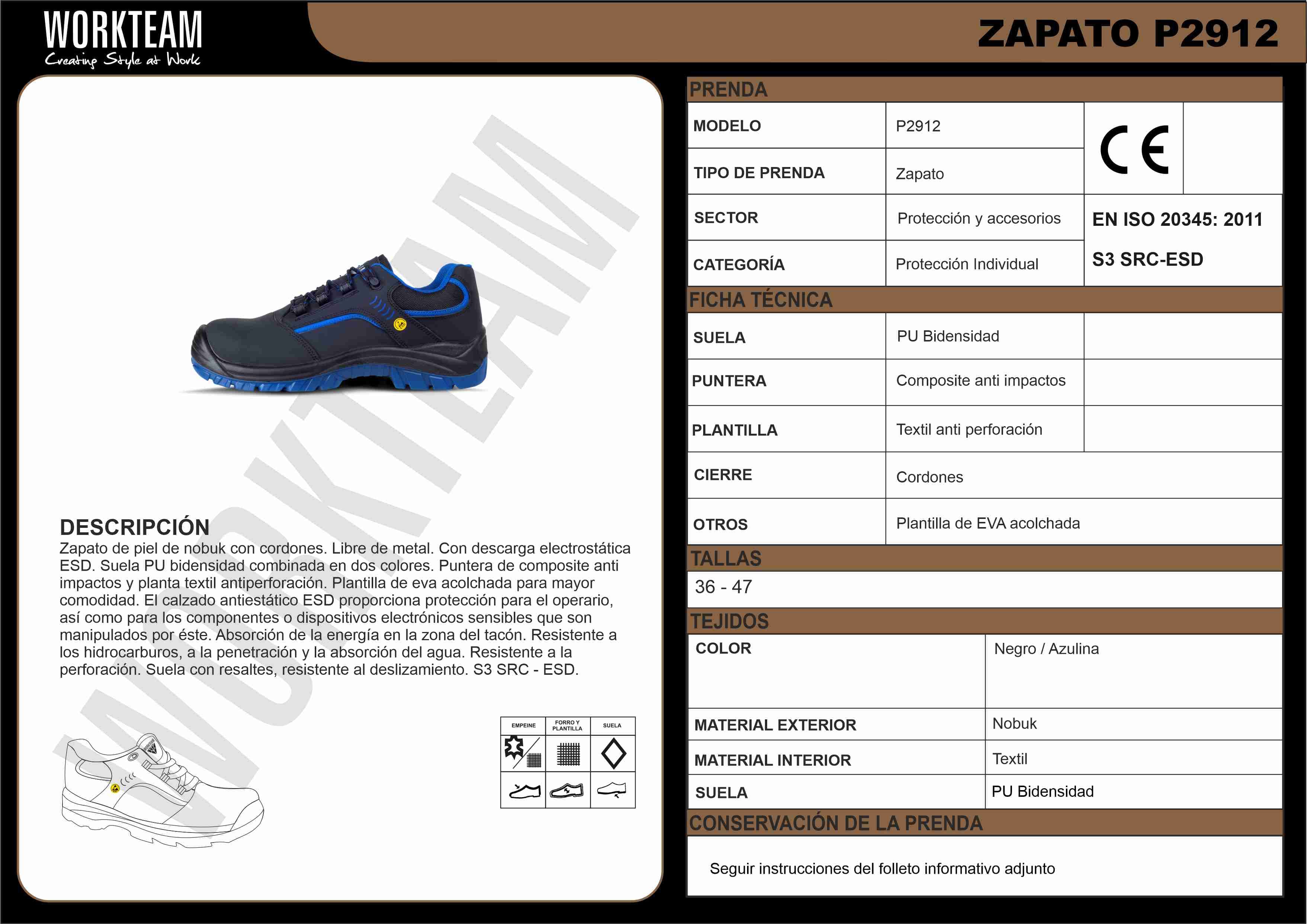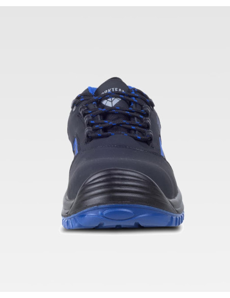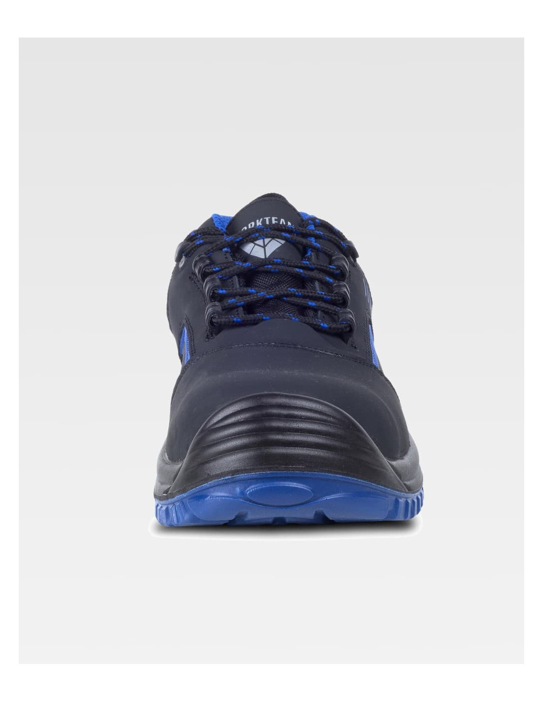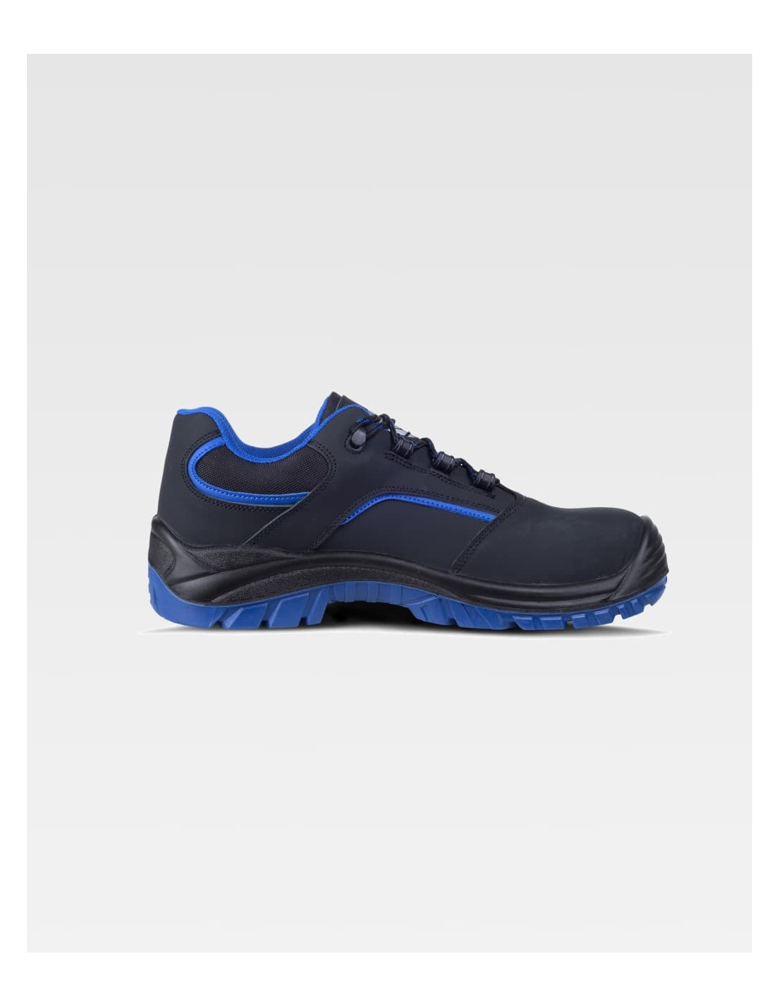 Zapato laboral de piel nobuk con cordones, diseñado para garantizar la máxima seguridad y comodidad. Libre de metal, con descarga electrostática ESD, ideal para proteger operarios y componentes electrónicos sensibles. Equipado con suela PU bidensidad en dos colores, puntera de composite anti impactos y plantilla textil antiperforación. Incluye plantilla de EVA acolchada para mayor confort. Absorbe la energía en el tacón y ofrece resistencia a hidrocarburos, perforaciones, penetración y absorción de agua. Su suela antideslizante con resaltes está certificada S3 SRC ESD.