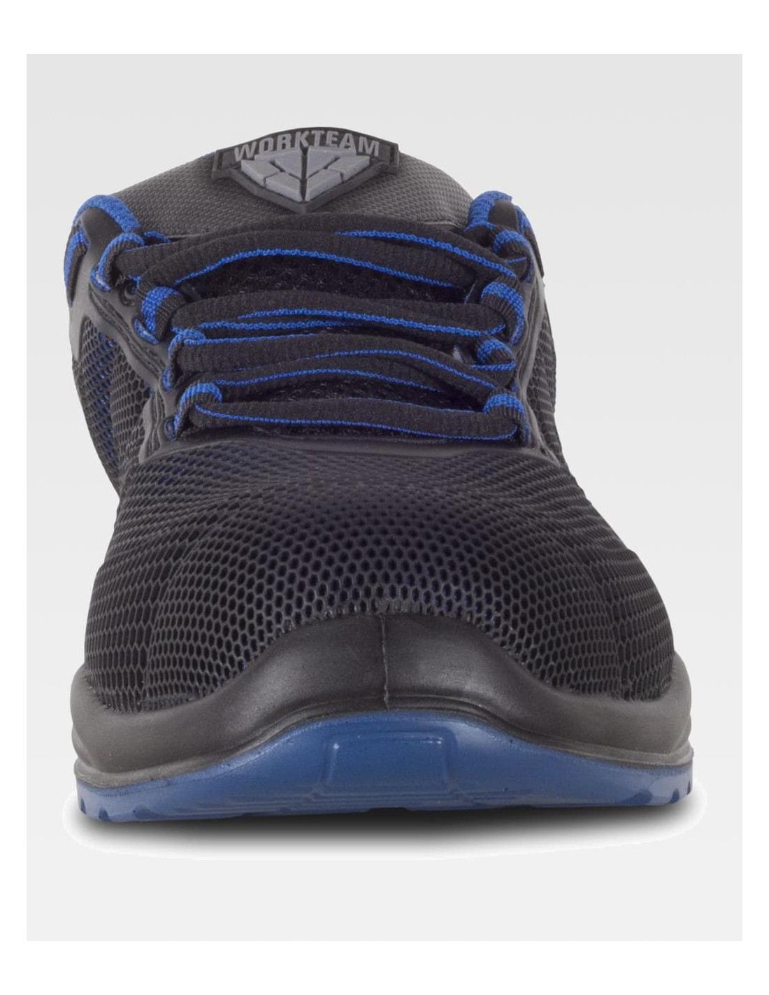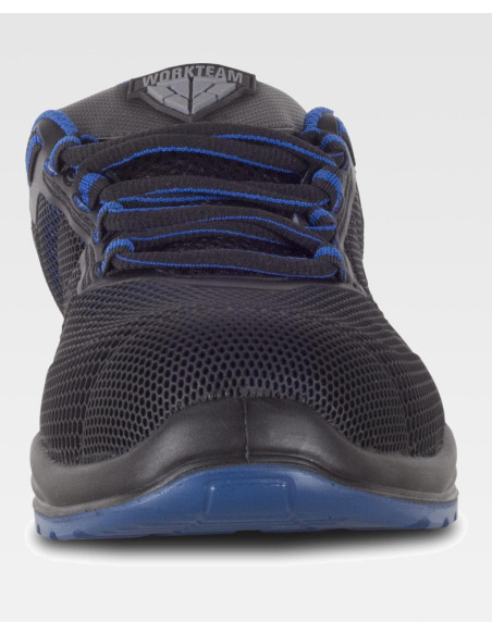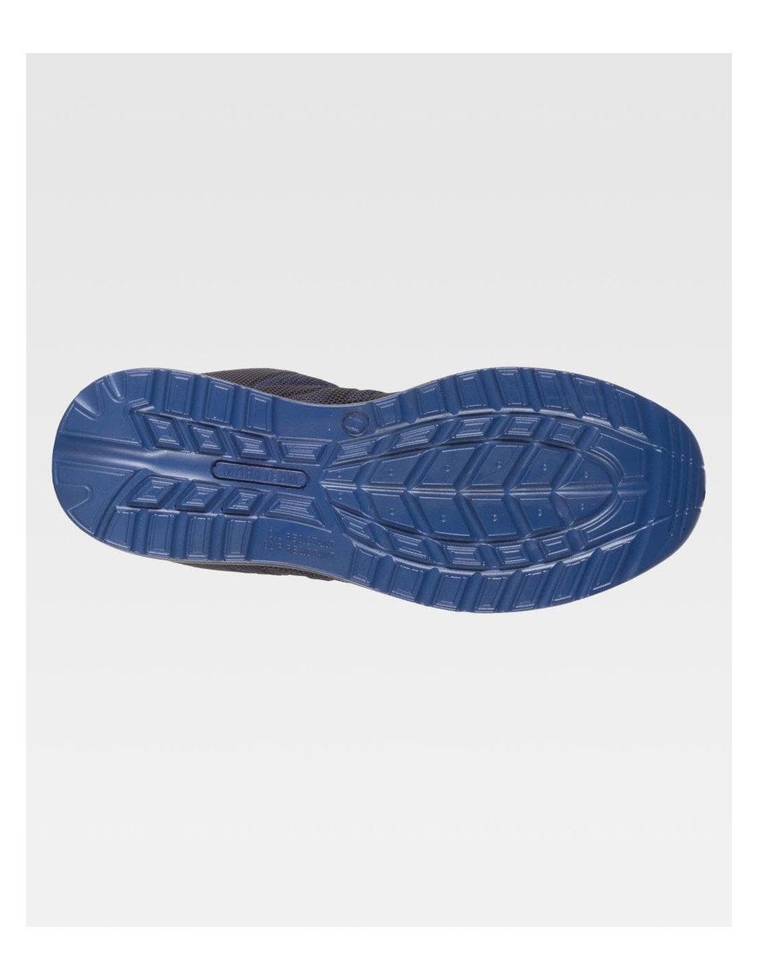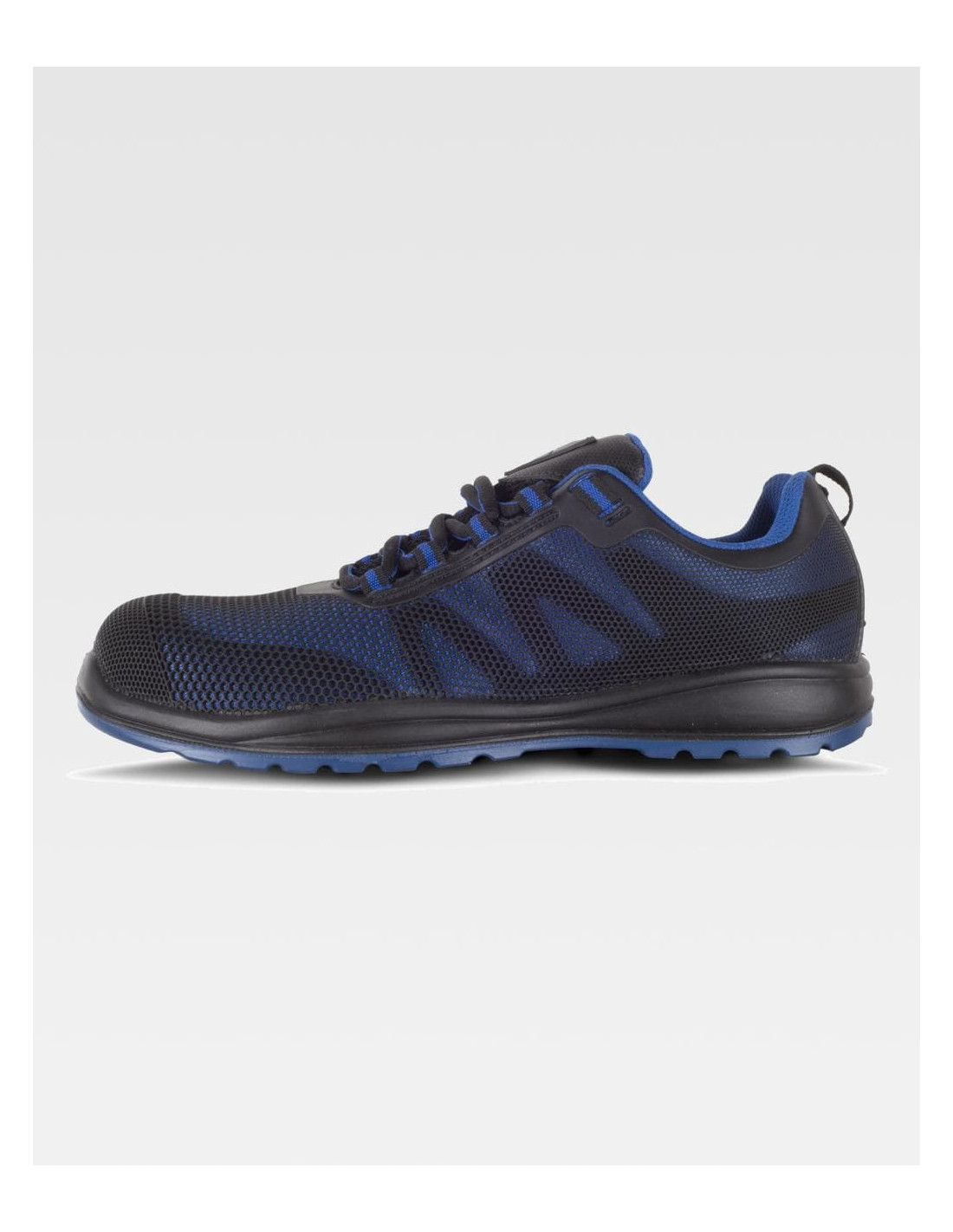 Zapato con cordones combinados, libre de metal, suela PU bidensidad combinada en dos colores, puntera de composite anti impactos y plantilla textil antiperforación. Certificación S1P SRC.