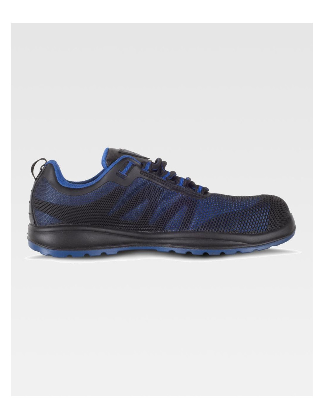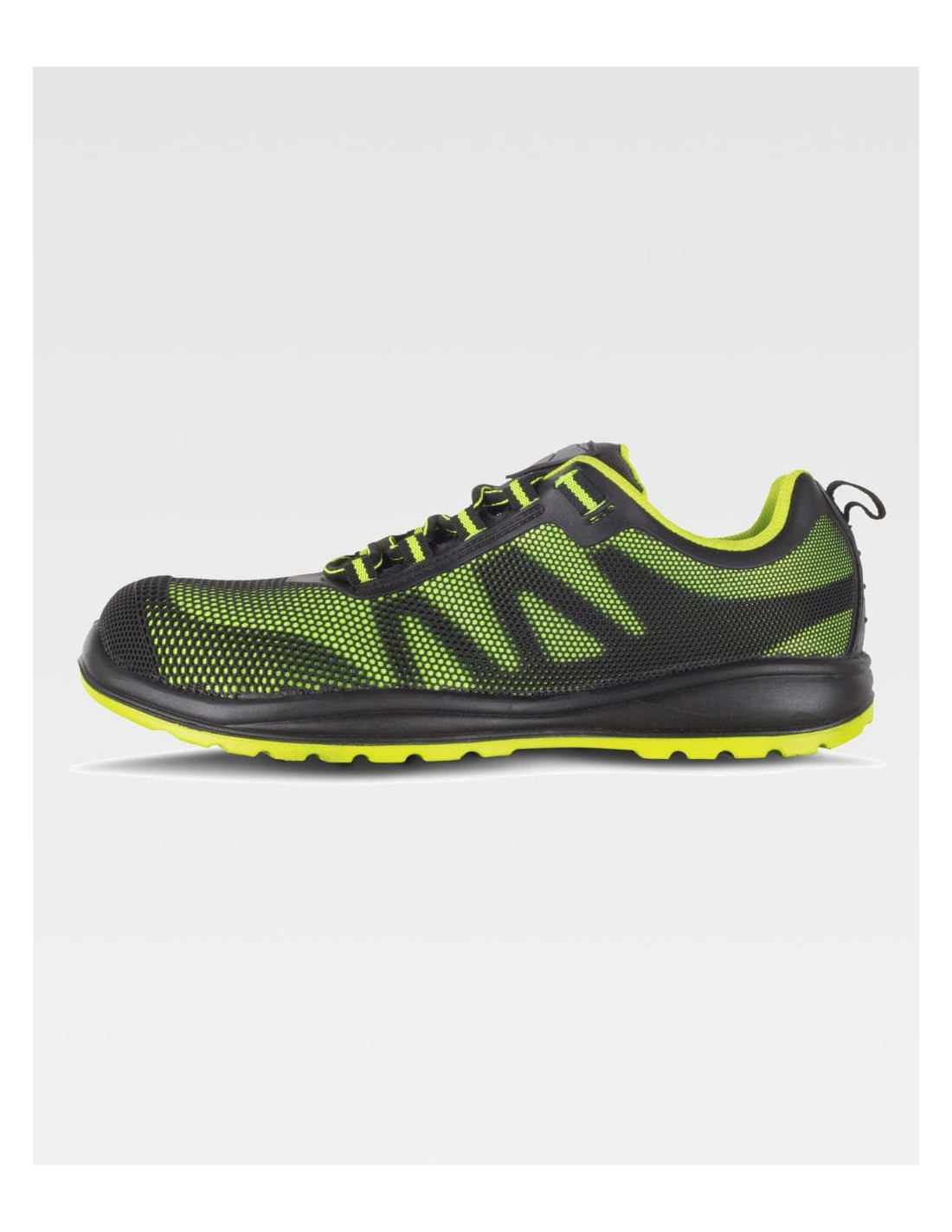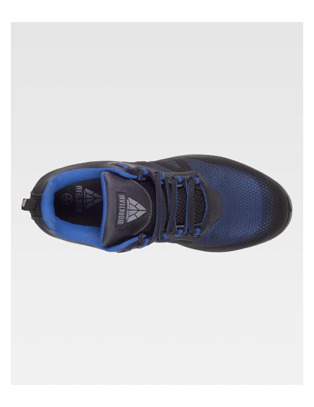Zapato con cordones combinados, libre de metal, suela PU bidensidad combinada en dos colores, puntera de composite anti impactos y plantilla textil antiperforación. Certificación S1P SRC.