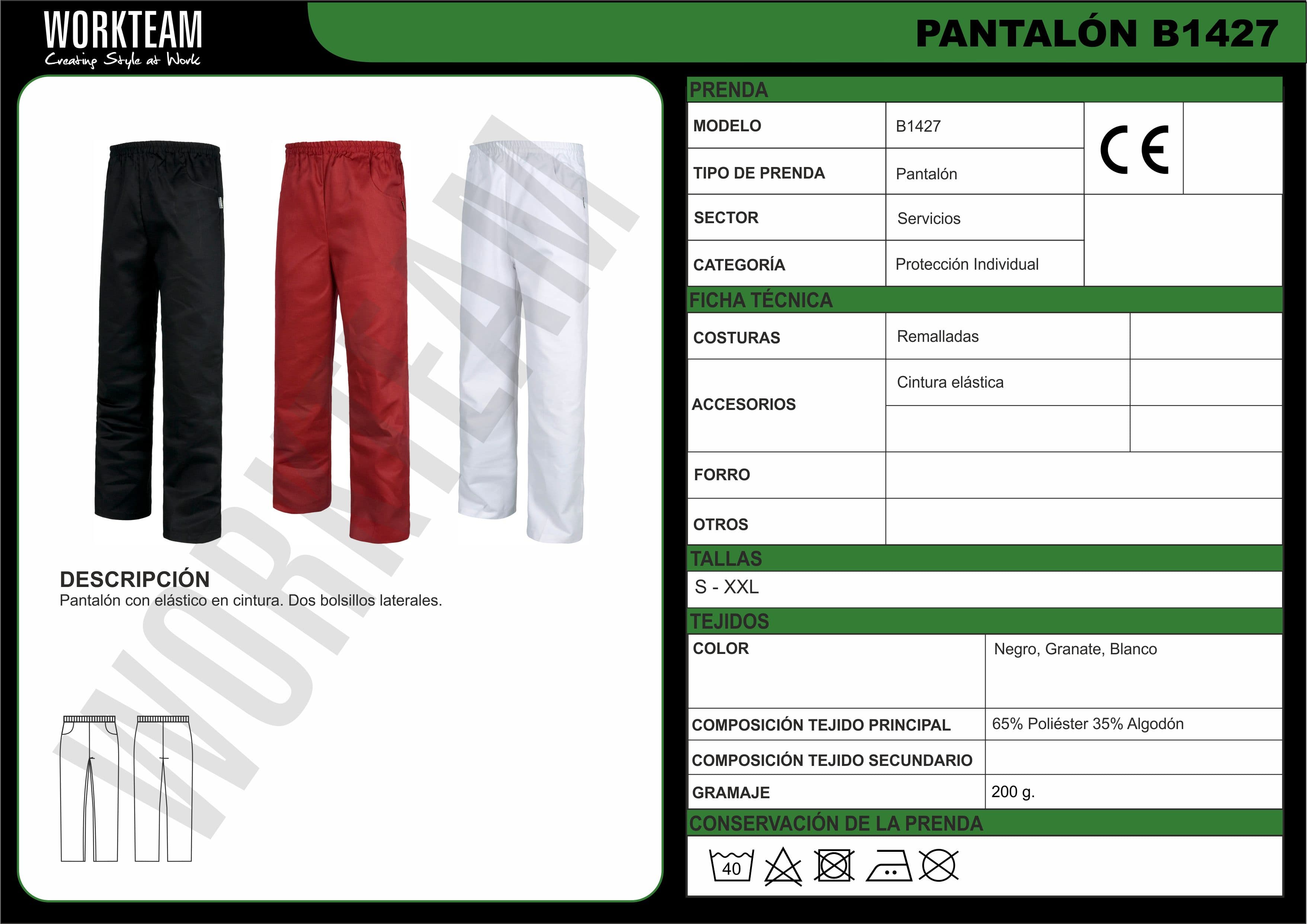 Pantalón recto unisex con diseño limpio y funcional, pensado para ofrecer comodidad diaria en el entorno laboral. Incorpora dos bolsillos laterales de apertura redonda, que facilitan el acceso y guardado de objetos o herramientas. La cintura elástica garantiza un ajuste cómodo y adaptable, sin renunciar a una imagen cuidada. Ideal para uniformes de trabajo en sectores como industria, hostelería, mantenimiento o servicios generales.