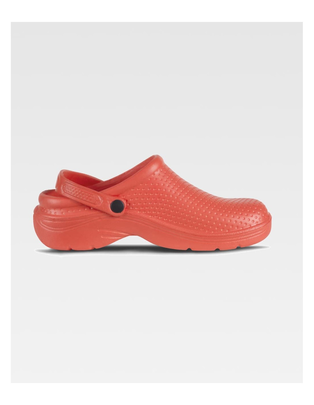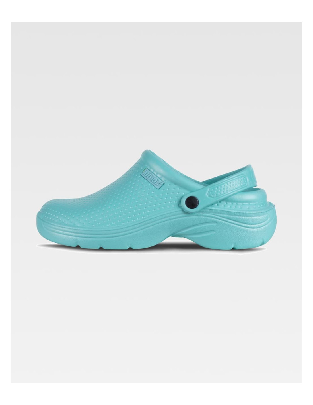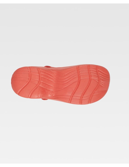 Zueco ultraligero de EVA, ergonómico y anatómico, con cámara ortopédica y tira de sujección para el talón. Resistente a los tropiezos y suave para los pies.