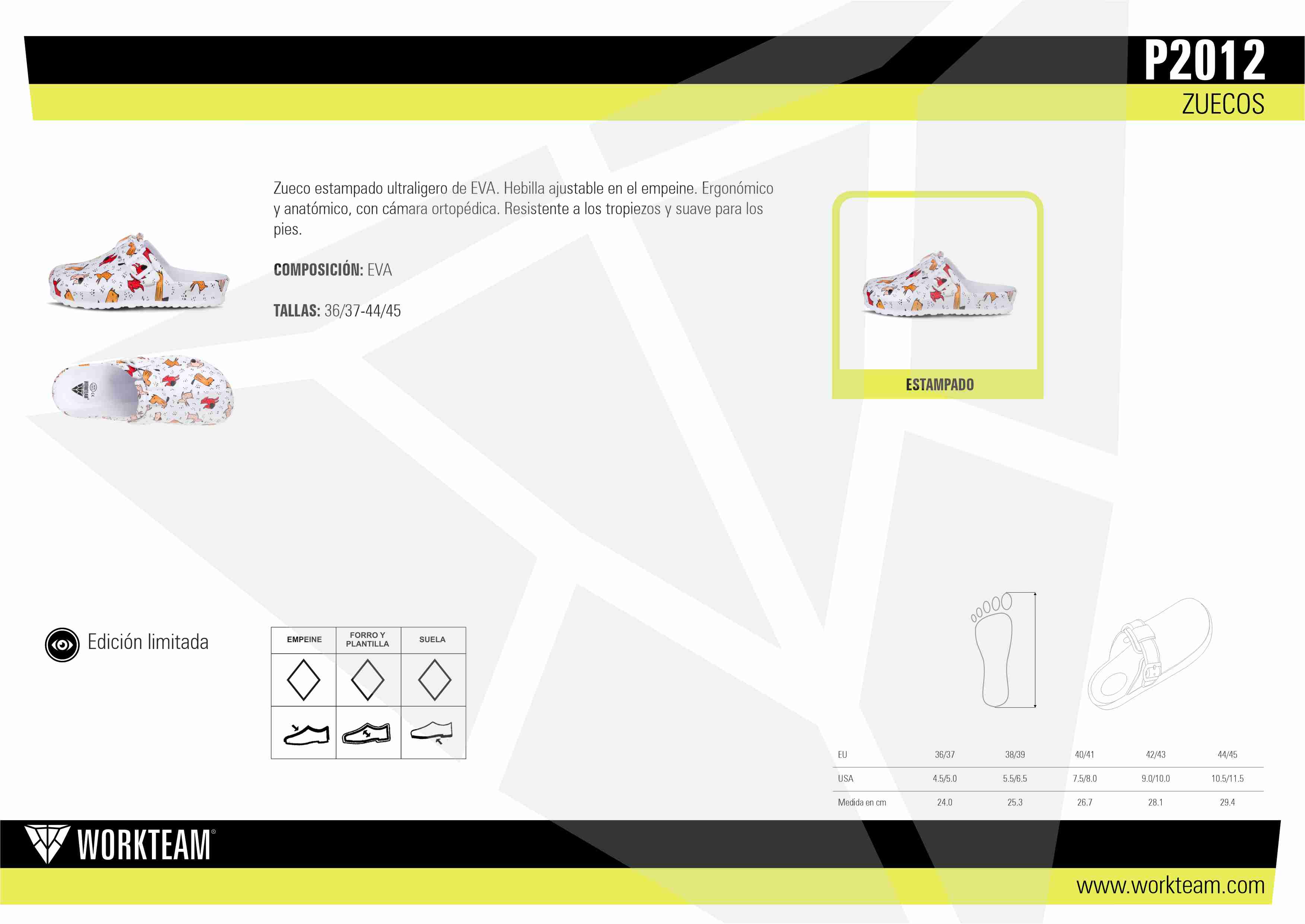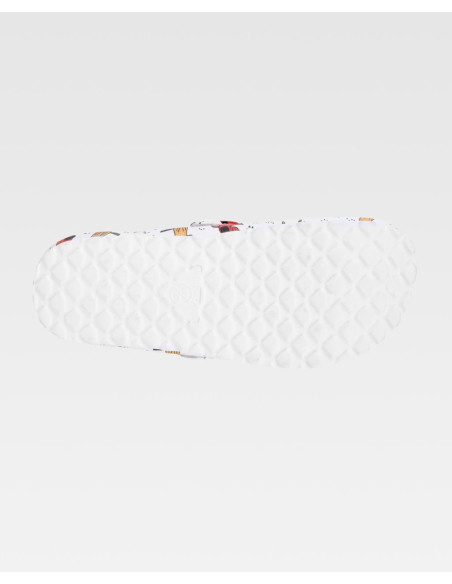 Zueco estampado ultraligero de EVA, diseñado para combinar estilo y comodidad. Equipado con una hebilla ajustable en el empeine para un ajuste perfecto, este zueco es ergonómico y anatómico, con una cámara ortopédica que proporciona un soporte superior. Su construcción resistente a los tropiezos protege contra accidentes, y su diseño suave asegura comodidad para los pies durante todo el día.