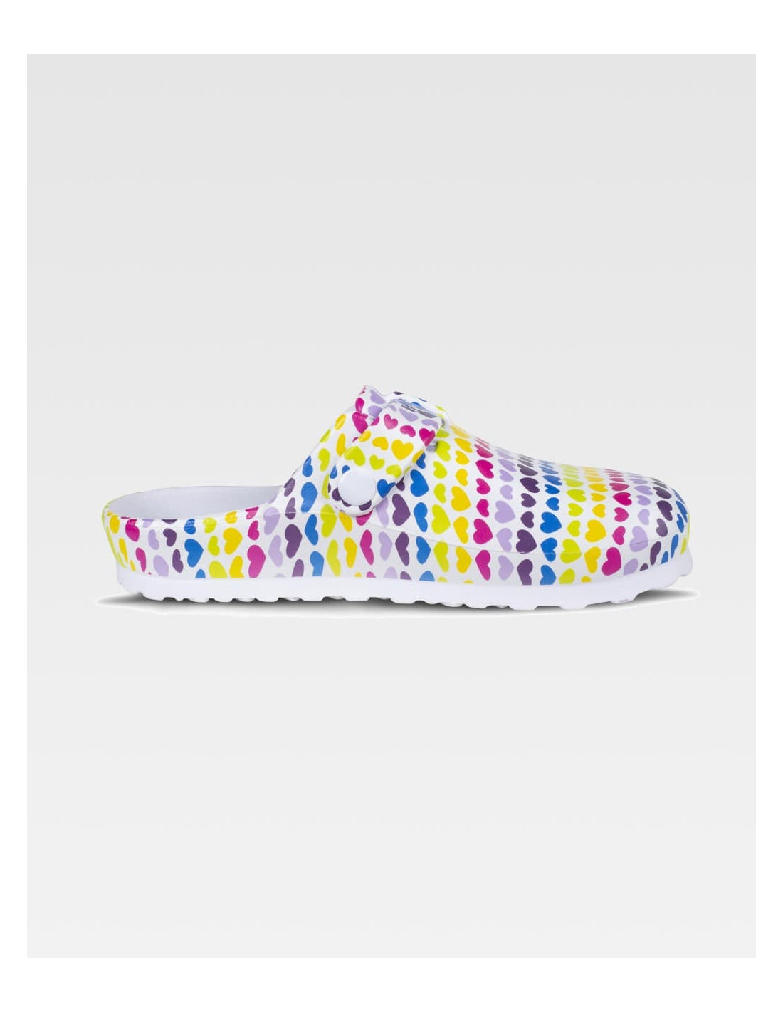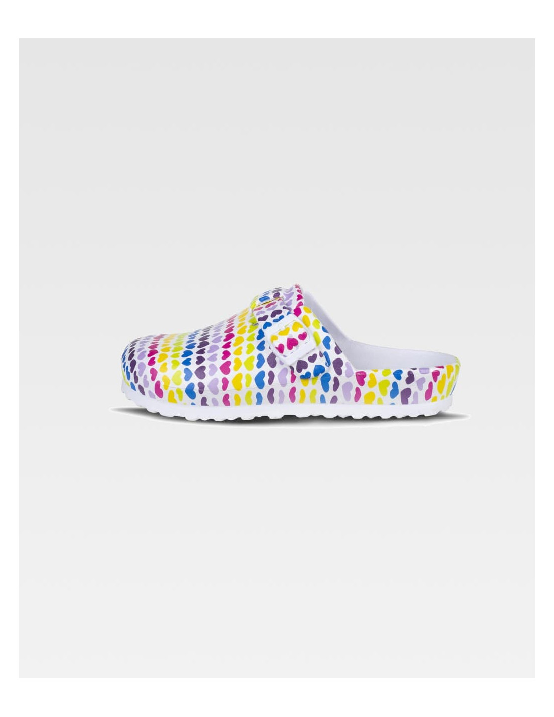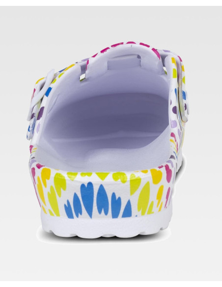 Zueco ultraligero de EVA con diseño estampado y hebilla ajustable en el empeine. Ergonómico y anatómico con cámara ortopédica. Resistente a los tropiezos y suave para los pies.