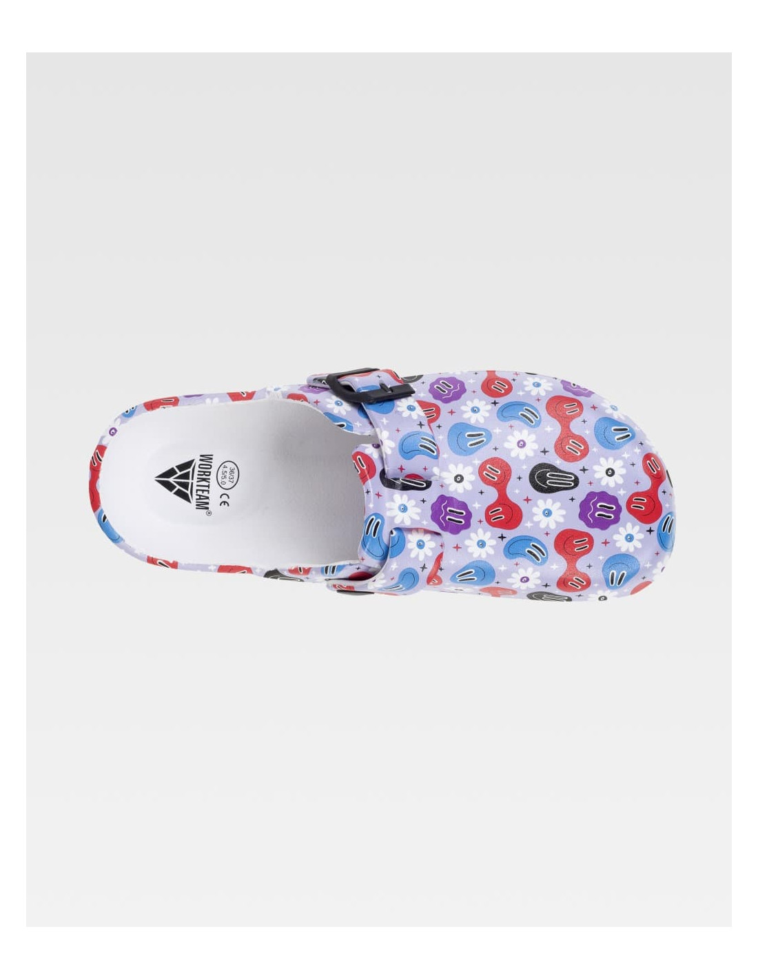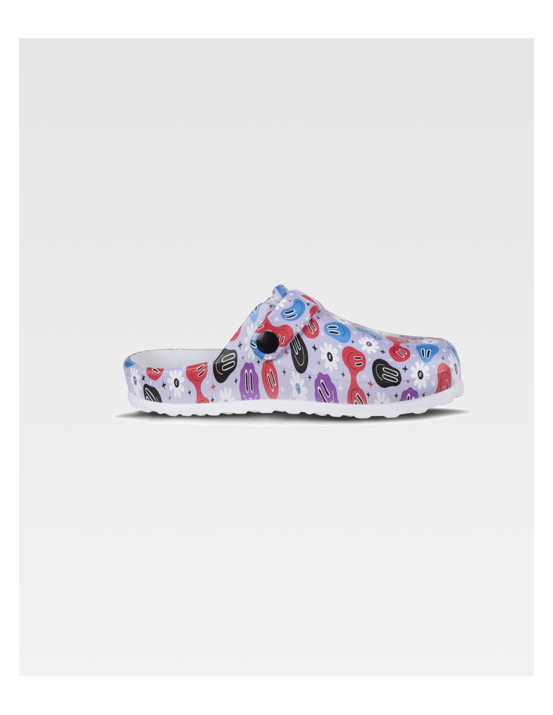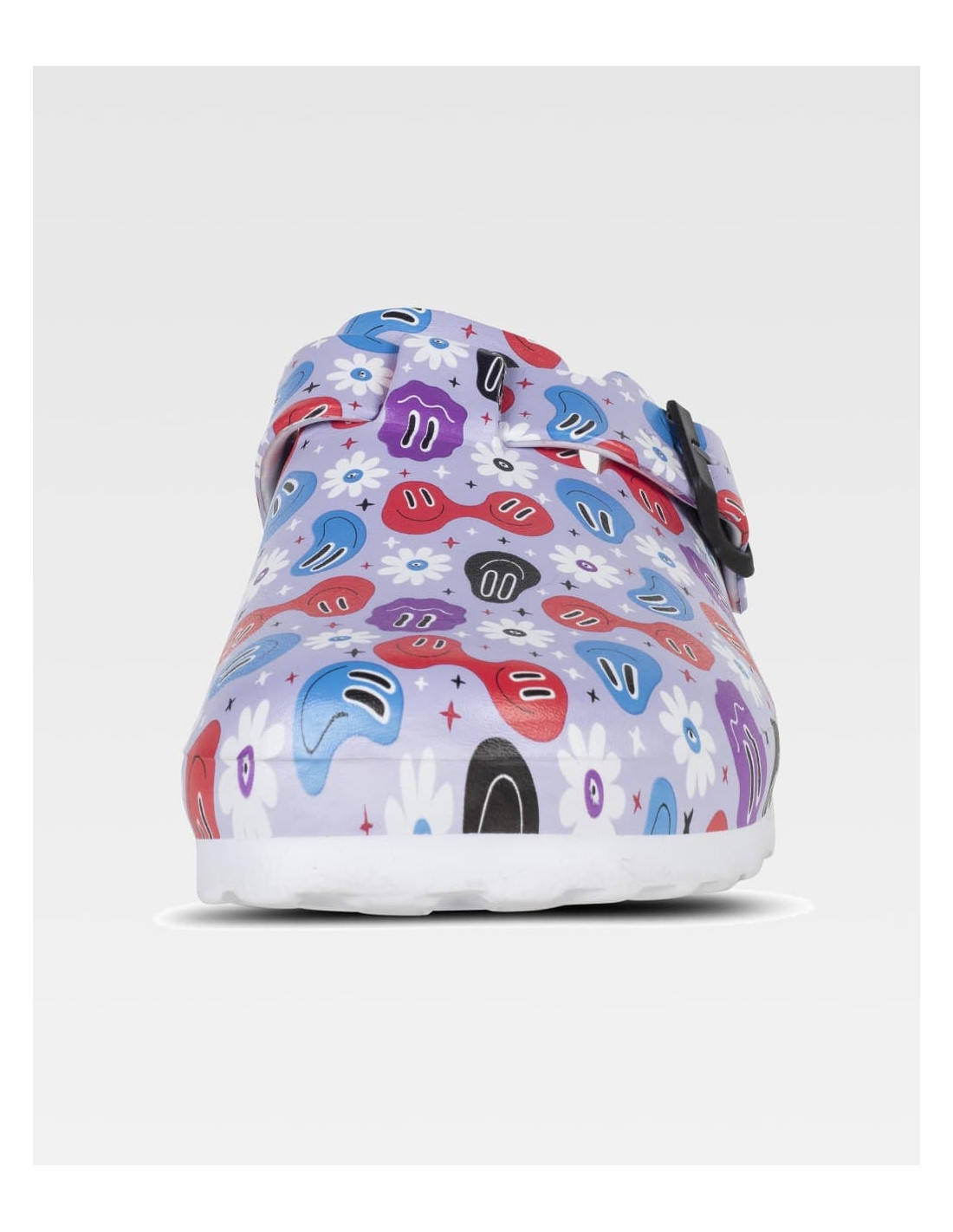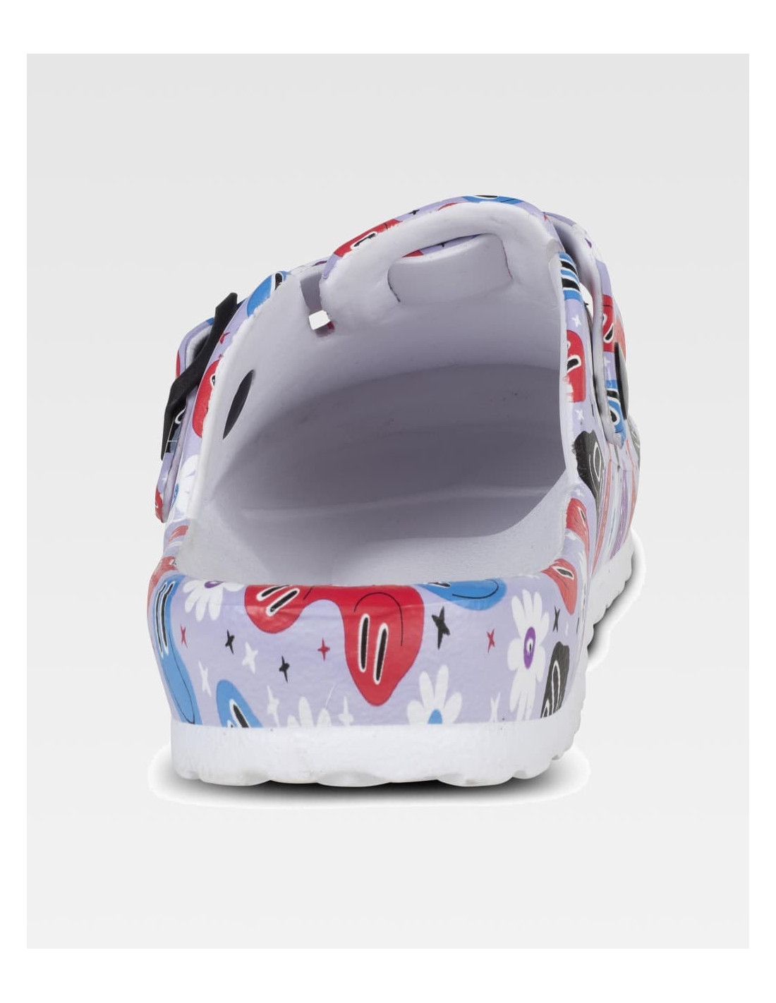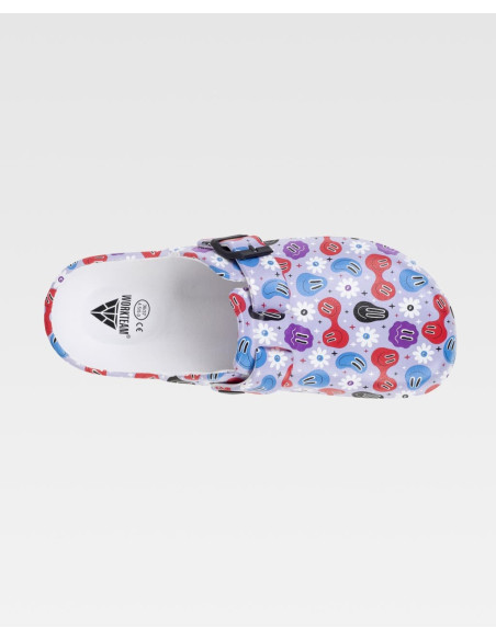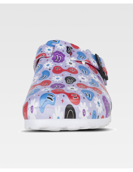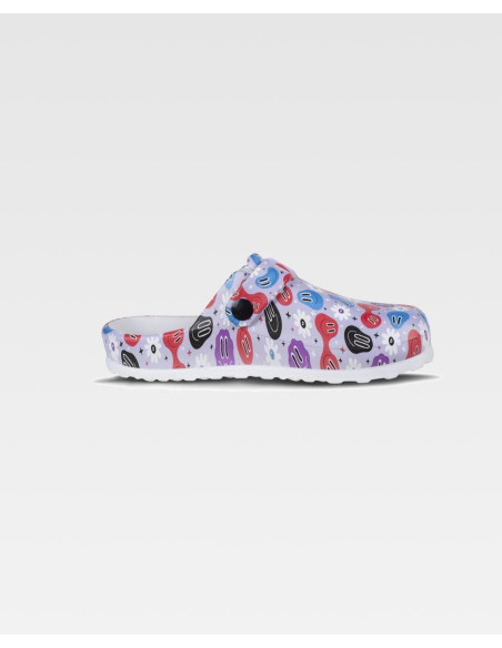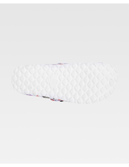 Zueco ultraligero de EVA con estampado, hebilla ajustable en el empeine. Ergonómico y anatómico con cámara ortopédica. Antitropiezos y confortable para los pies.