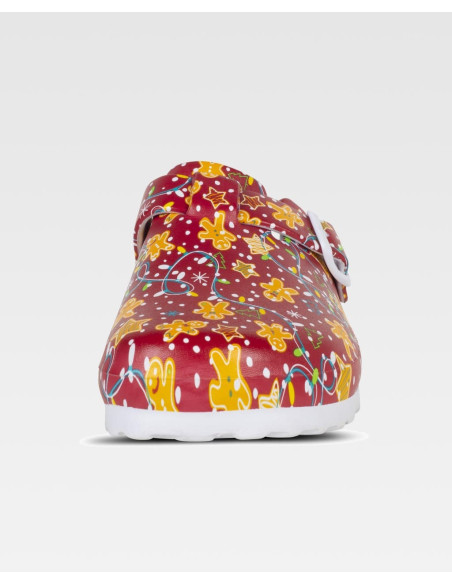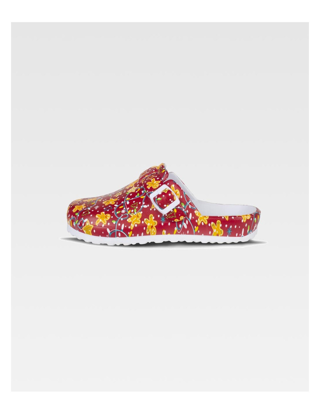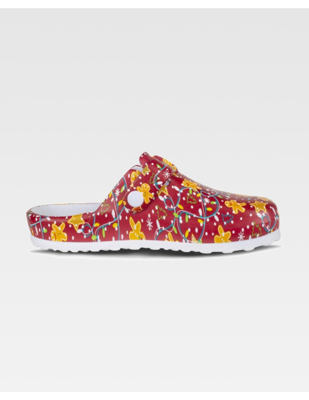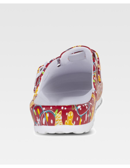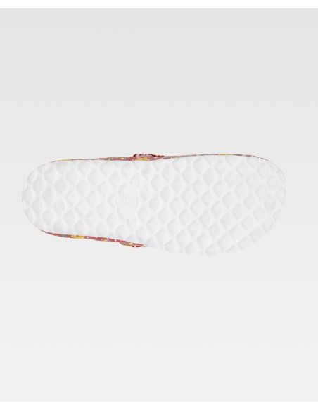 Zueco estampado ultraligero de EVA con hebilla ajustable en el empeine. Diseño anatómico y ergonómico con cámara ortopédica. Resistente a tropiezos y cómodo para los pies.