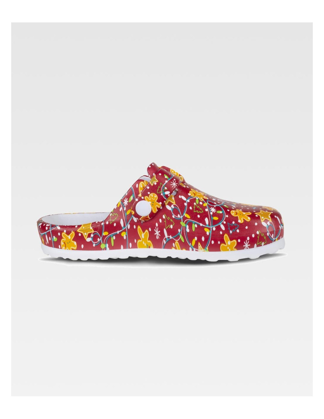 Zueco ultraligero de EVA estampado, diseñado para máxima comodidad y estilo. Con una hebilla ajustable en el empeine que asegura un ajuste perfecto, su diseño ergonómico y anatómico con cámara ortopédica garantiza un soporte ideal. Además, es resistente a los tropiezos, ofreciendo seguridad y confort a cada paso, manteniendo los pies suaves y cómodos durante todo el día.